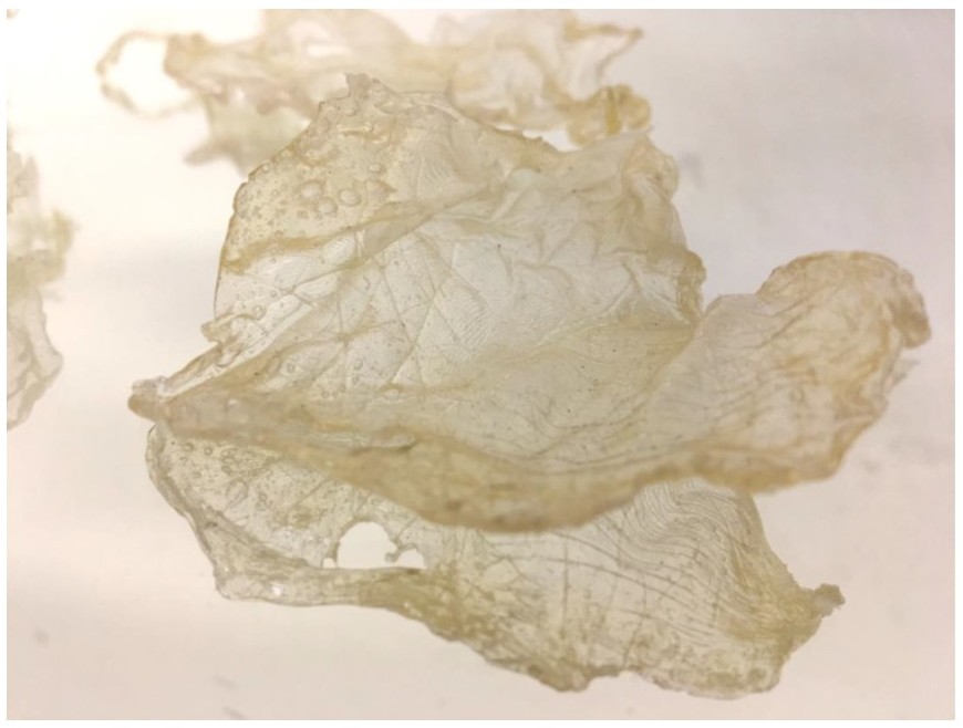 Tegument is Latin for skin or protective layer. The work explores the function of skin as both boundary, imprint, and connection between human and non-human bodies. For the exhibition, Laura Degn will create a large, unified surface of skin shaped like a curtain — made from dried gelatin, with small imprints from her own skin.