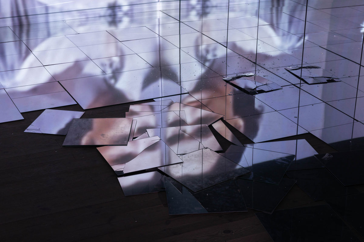 Gizem Evcils videoværk PTSD - a love story indfanger en intens refleksion over den menneskelige tilstand gennem en spejlinstallation, der skaber en rumlig og psykologisk dybde, hvor beskueren konfronteres med fragmenter af egen og kollektiv erindring. Værket, der er akkompagneret af sangen Mreyte ya mreyte af libaneseren Khaled Mouzanar, udnytter musikkens emotionelle kraft til at fremmane en følelse af nostalgi og tab. Sangens melodiske kvaliteter og dens tematiske fokus på refleksion og selvindsigt forstærker videoværkets introspektive natur.